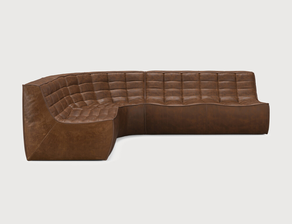 Ethnicraft Design. Jacques Deneef - Canapé modulaire N701 Dimensions : l 260 x h 76 x p 200 cm Le canapé N701 offre un design chaleureux qui respire le confort et la détente. En combinant les modules aux dimensions variées, vous avez une infinité de possibilités dès lors qu'il s'agit de créer votre propre style d'intérieur. Conçu par Jacques Deneef, il est disponible en plusieurs couleurs et matières avec des options pré-configurées ou entièrement personnalisable. Composition canapé gauche : module 1 place + module d'angle arrondi à 90° + module 2 places. Des connecteurs pour relier les modules sont inclus. 100% cuir aniline. Des variations de couleur peuvent se produire. canapé modulaire