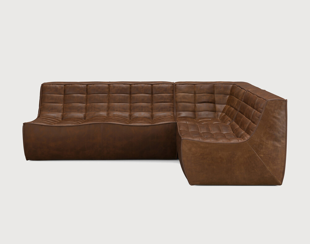 Ethnicraft Design. Jacques Deneef - Canapé modulaire N701 Dimensions : l 231 x h 76 x p 171 cm Le canapé N701 offre un design chaleureux qui respire le confort et la détente. En combinant les modules aux dimensions variées, vous avez une infinité de possibilités dès lors qu'il s'agit de créer votre propre style d'intérieur. Conçu par Jacques Deneef, il est disponible en plusieurs couleurs et matières avec des options pré-configurées ou entièrement personnalisable. Composition canapé droit : module 2 places + module d'angle carré à 90° + module 1 place. Des connecteurs pour relier les modules sont inclus. 100% cuir aniline. Des variations de couleur peuvent se produire. canapé modulaire