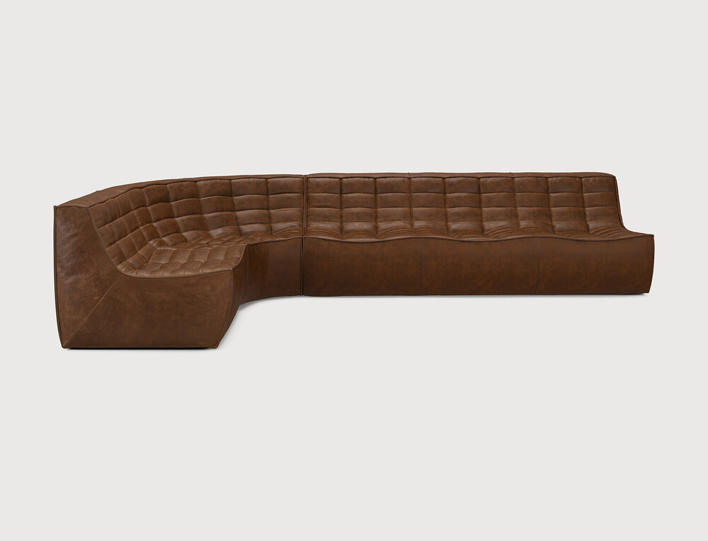 Ethnicraft Design. Jacques Deneef - Canapé modulaire N701 Dimensions : l 330 x h 76 x p 200 cm Le canapé N701 offre un design chaleureux qui respire le confort et la détente. En combinant les modules aux dimensions variées, vous avez une infinité de possibilités dès lors qu'il s'agit de créer votre propre style d'intérieur. Conçu par Jacques Deneef, il est disponible en plusieurs couleurs et matières avec des options pré-configurées ou entièrement personnalisable. Composition canapé gauche : module 1 place + module d'angle arrondi à 90° + module 3 places. Des connecteurs pour relier les modules sont inclus. 100% cuir aniline. Des variations de couleur peuvent se produire. canapé modulaire