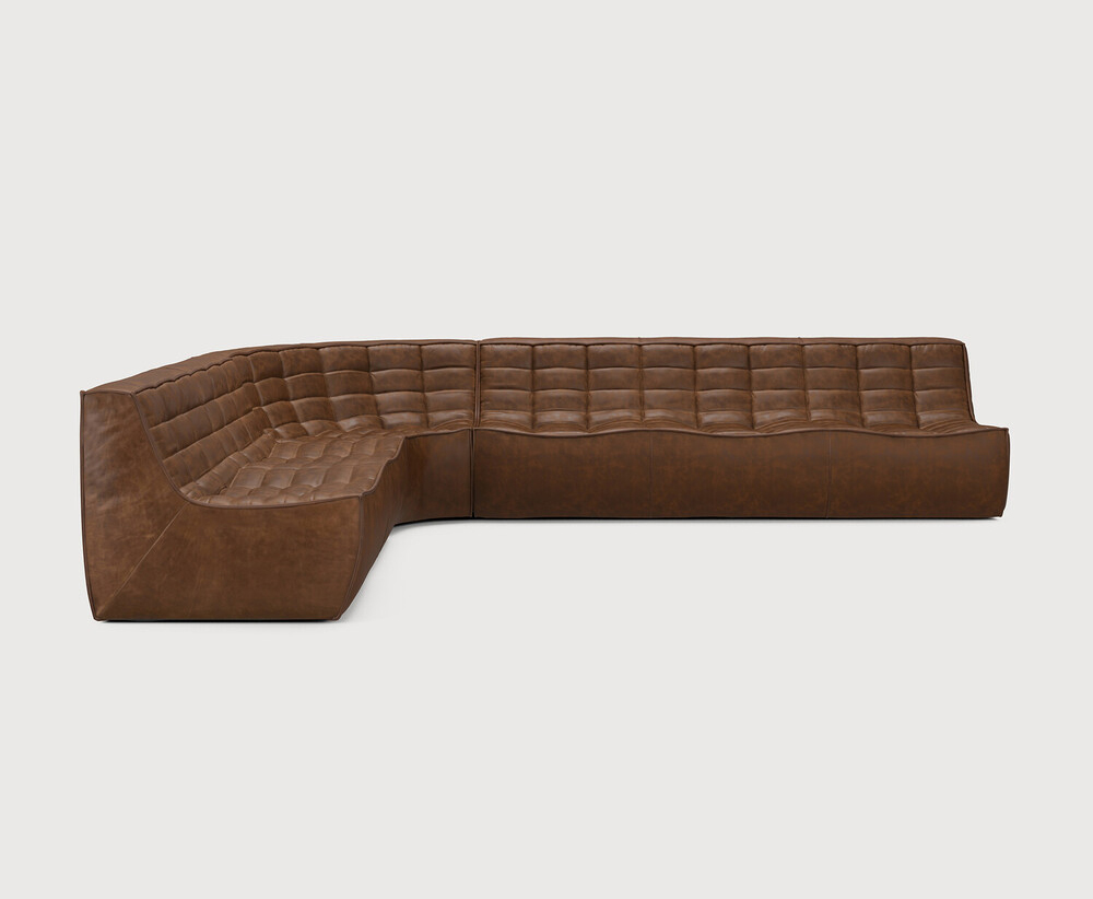 Ethnicraft Design. Jacques Deneef - Canapé modulaire N701 Dimensions : l 330 x h 76 x p 260 cm Le canapé N701 offre un design chaleureux qui respire le confort et la détente. En combinant les modules aux dimensions variées, vous avez une infinité de possibilités dès lors qu'il s'agit de créer votre propre style d'intérieur. Conçu par Jacques Deneef, il est disponible en plusieurs couleurs et matières avec des options pré-configurées ou entièrement personnalisable. Composition canapé gauche : module 2 places + module d'angle arrondi à 90° + module 3 places. Des connecteurs pour relier les modules sont inclus. 100% cuir aniline. Des variations de couleur peuvent se produire. canapé modulaire