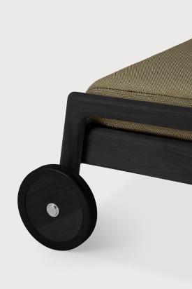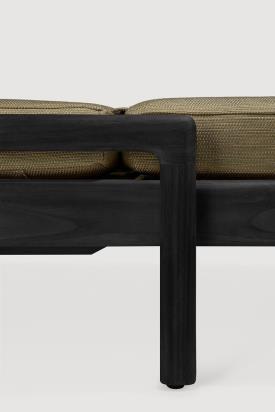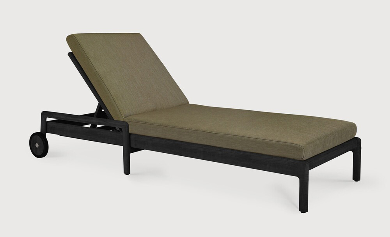 Ethnicraft Design. Jacques Deneef Dimensions : l 216 x h 34 x p 84 cm La collection Jack offre des courbes et formes belles sous tous les angles. Doté d'un revêtement tissé en Belgique, chaque détail a été méticuleusement conçu pour assurer confort et élégance lorsque vous profitez de l'extérieur. Les cadres et les coussins peuvent être commandés ensemble ou séparément. Fabriqués en 100% teck massif teinté noir, brossé et vernis / Tissu 100% polyprop / Mousse à séchage rapide. chaise longue extérieur outdoor