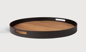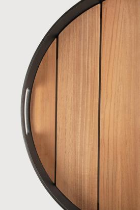 Ethnicraft Plateau Core de jardin Dimensions : Ø 48 x h 5 cm Accessoire fonctionnel et élégant, le plateau d'extérieur Core est conçu pour la vie quotidienne au grand air. Sa surface généreuse est idéale pour transporter des boissons, des assiettes ou des objets essentiels, et il peut être associé aux tables à plateaux d'extérieur pour une plus grande polyvalence. Fabriqué en teck massif naturel, ce plateau est solide et durable pour les espaces extérieurs. Pour garantir la beauté naturelle du bois, ce modèle en teck n’a reçu aucune finition ni aucun traitement de protection. Fabriqué en teck massif, avec un bord en aluminium thermolaqué en bronze foncé. plateau extérieur outdoor
