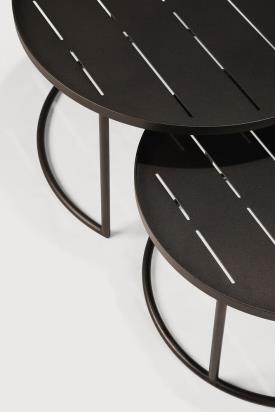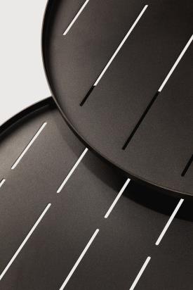 Ethnicraft Set de tables basses à plateaux de jardin Dimensions : Ø 62 x h 38 cm Les tables à plateaux d'extérieur s'intègrent avec polyvalence dans les espaces extérieurs. Servant de tables d'appoint ou de tables basses, leurs plateaux sont conçus pour accueillir notre gamme de plateaux d'intérieur ou d'extérieur, ce qui vous permet d'allier fonctionnalité et expression personnelle. Utilisées individuellement ou sous forme d'ensemble, elles offrent des surfaces adaptables qui améliorent les espaces détente et repas d'extérieur. À combiner avec deux plateaux ronds : un grand et un petit. Plateaux à commander séparément. Fabriqué en aluminium thermolaqué. table à plateau extérieur outdoor