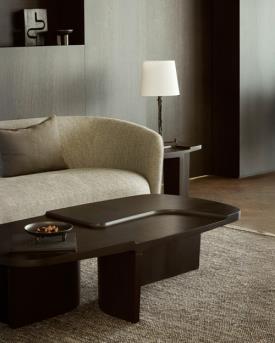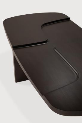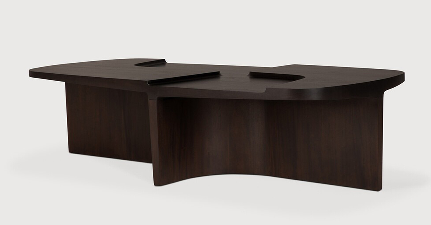 Ethnicraft Design. Alain van Havre Dimensions : l 143 x h 37 x p 75 cm Avec une présence affirmée et une forme distinctive, la collection Brutalist propose une interprétation saisissante du mobilier fonctionnel. Entièrement réalisée en acajou massif, chaque pièce se distingue par sa silhouette marquée et ses ouvertures sculptées - un équilibre subtil entre la masse et le vide. Une finition teintée et vernie sublime le grain naturel du bois, ajoutant profondeur et chaleur à sa forme architecturale. À la fois pièce maîtresse et surface fonctionnelle, la collection Brutalist apporte un caractère durable à tout espace. Fabriqué en acajou teinté brun rose et verni. table basse