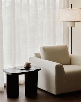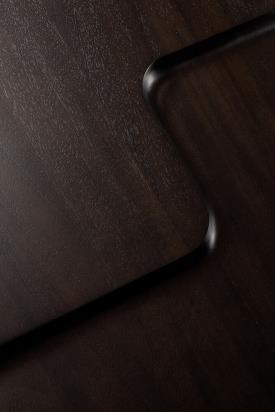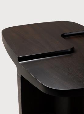 Ethnicraft Design. Alain van Havre - Table d'appoint Brutalist Dimensions : l 60 x h 45 x p 40 cm Avec une présence affirmée et une forme distinctive, la collection Brutalist propose une interprétation saisissante du mobilier fonctionnel. Entièrement réalisée en acajou massif, chaque pièce se distingue par sa silhouette marquée et ses ouvertures sculptées - un équilibre subtil entre la masse et le vide. Une finition teintée et vernie sublime le grain naturel du bois, ajoutant profondeur et chaleur à sa forme architecturale. À la fois pièce maîtresse et surface fonctionnelle, la collection Brutalist apporte un caractère durable à tout espace. Fabriqué en acajou teinté brun rose et verni. table d'appoint