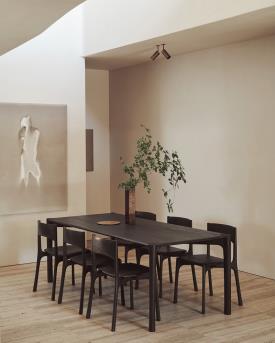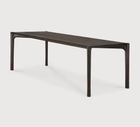 Ethnicraft Design. Alain van Havre Dimensions : l 240 x h 76 x p 100 cm La collection PI rend hommage au design du vivant en conservant la force, les courbes et les lignes créées par la nature. Des formes intrigantes se dessinent dans cette finition polie et imparfaite, à la fois élégante et stylée. Chaque modèle de la collection PI est fini à la main pour garantir le respect du caractère unique du bois. La table PI est le lieu idéal, pour se réunir et partager des moments avec ceux qui nous sont chers. Fabriqué en teck massif certifié FSC®, teinté en brun foncé et brossé, avec une finition vernie.