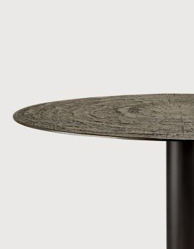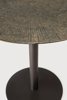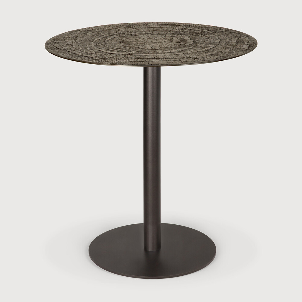Le plateau de la table présente une finition Ray Whisky Minerals et un piètement thermolaqué de couleur Dark Bronze. Minerals est un matériau mélangeant poudres minérales, eau, terre, pigments naturels et poudres de métaux. Il est assemblé avec soin afin de créer une finition unique sur la structure métallique, scellée au moyen d'un revêtement à base d'eau, qui offre une protection optimale contre les liquides et vous permet de l'utiliser au quotidien.