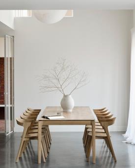 Notre emblématique table Bok est extensible, pour pouvoir rassembler encore plus de convives. Sa forme aérienne et sa structure solide font de cette table à rallonge en chêne massif un design intemporel et remarquable dont vous pourrez profiter pendant des années.