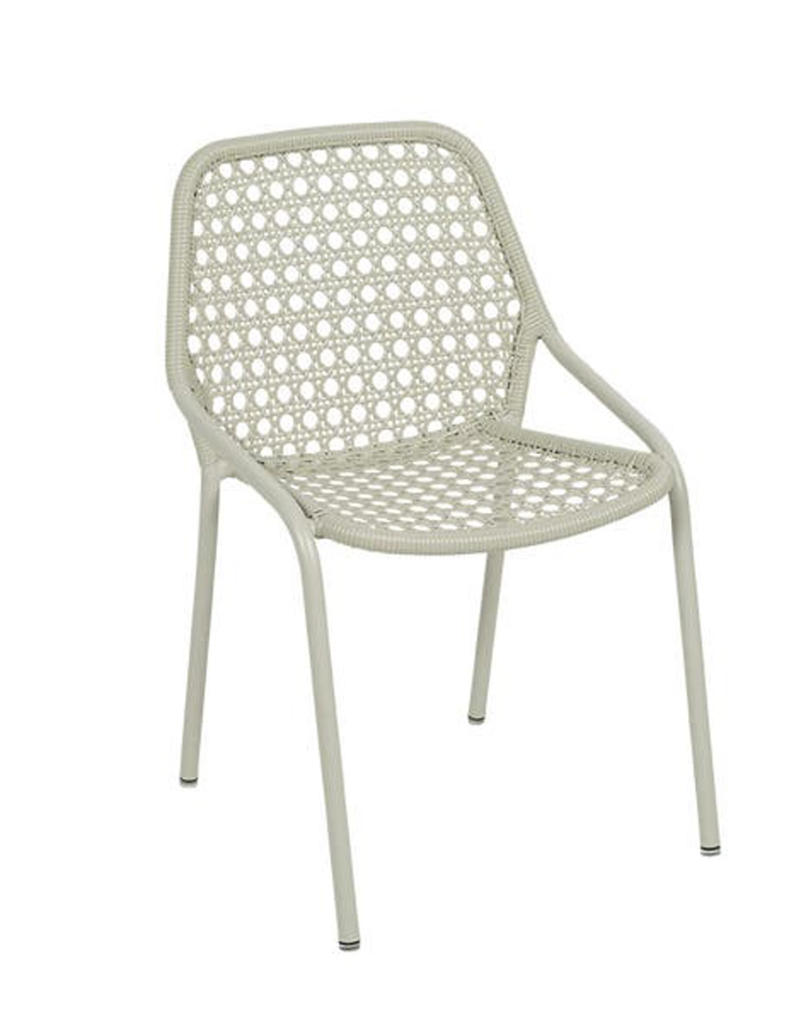 Son tressage à la main en fibre synthétique s’associe à la finesse d’une structure en aluminium pour une chaise ultra légère, résistante, et pensée pour vivre dehors... mais aussi dedans ! Facile à déplacer, simple à entretenir, elle suit tous vos moments de détente avec aisance.