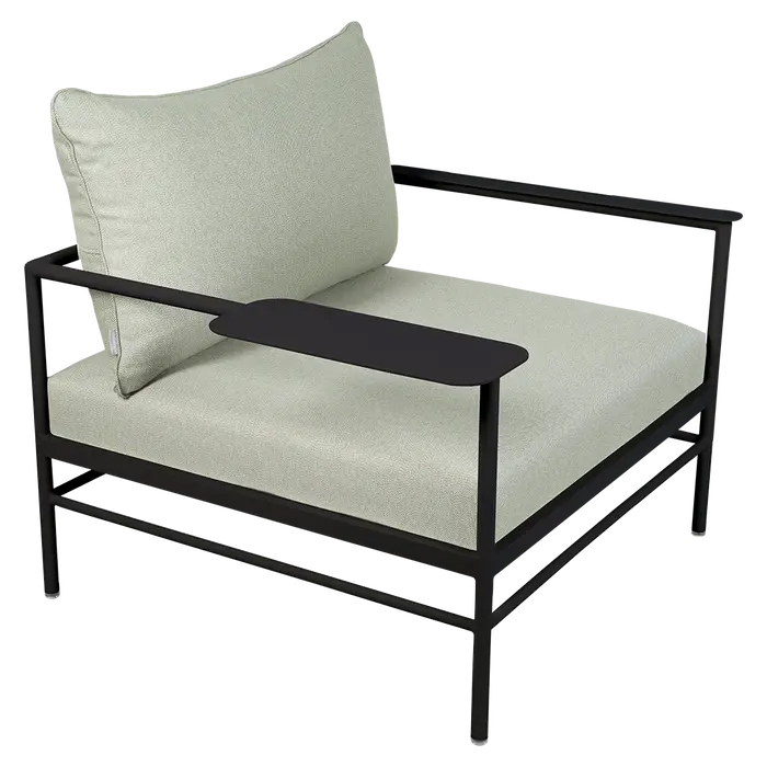 Fermob Dimensions : l 85 x h 78 x p 85 cm Caractéristiques Poids : 15 kg Structure tube aluminium Dossier tube aluminium Accoudoir(s) tôle aluminium Tissu outdoor acrylique teint masse ou TTE Batyline® Eden ou TTE Batyline Eden Waterproof Garnissage mousse assise polyuréthane haute résilience Garnissage mousse dossier polyuréthane flocon Patins silence Cadre d'assise en aluminium laqué avec TTE tendue fauteuil bas extérieur outdoor métal
