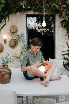 Fermob Design : Tristan LOHNER Dimensions : l 11,5 x h 24,5 x p 11,5 cm Diffuseur polyéthylène Structure aluminium Base ABS Scénario d'éclairage : Position 1 blanc froid (6000°K) 100% Position 2 blanc froid (6000°K) 50% Position 3 blanc chaud (3000°K) 100% Position 4 blanc chaud (3000°K) 50% Source : LED intégrée Flux lumineux : 70 lm Type d'alimentation : batterie Autonomie Min (100%) : 7 h Autonomie Max : 15 h Temps de recharge : 3 h Câble (fourni) : 1 m Bypass pour une utilisation filaire sans endommager la batterie Voltage : 5 V Puissance max : 0.5 W Norme IP IP54 Norme IK IK 10 Norme CE Norme FCC Norme UKCA Classe énergétique : F Powered by Smart & Green Type de luminaire : A poser Couleur diffuseur (luminaire) : Blanc Type de recharge : USB - Câble (fourni) 1m Poids : 0,37 kg lampe baladeuse extérieur outdoor