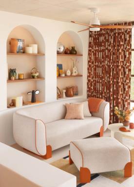 Personnalisable avec les mêmes tissus, pieds et passepoils que le canapé, il s’intègre parfaitement dans l’ensemble de la collection.
