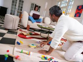 Fermob Design : Studio Fermob Dimensions : Ø 42 x h 45 cm Sa construction mêle structure en hêtre, mousse haute résilience, ouatine et tissu ignifugé, pour un confort doux et durable. Ses lignes arrondies apportent une touche chaleureuse et contemporaine. Également déhoussable, il intègre un système discret et élégant, pensé pour simplifier l’entretien sans compromettre le design. Un choix qui prolonge la durée de vie du produit tout en préservant son esthétique. Disponible avec les mêmes options de tissus, pieds et passepoil, il s’accorde parfaitement au canapé et enrichit les possibilités de composition. Cadre en hêtre et contreplaqué hêtre Assise en mousse polyuréthane haute résistance 38 kg/m3 à base d’huile de ricin et ouate en polyester 200gr/m2 Pieds acier Tissu d’habillage « Bouclette » 45% de coton, 19% de viscose, 15% de laine, 13% polyacrylique, 8% de polyester Entretien : housse déhoussable et lavable au pressing pouf