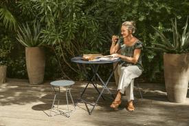 Dimensions : Ø 34 x h 45 cm Couleur : miel 26 couleurs disponibles Caractéristiques Poids : 2,6 kg Structure fil acier Assise tôle acier tabouret extérieur outdoor métal