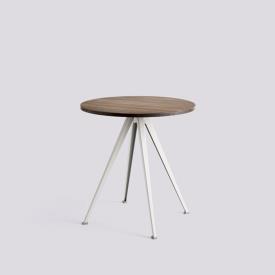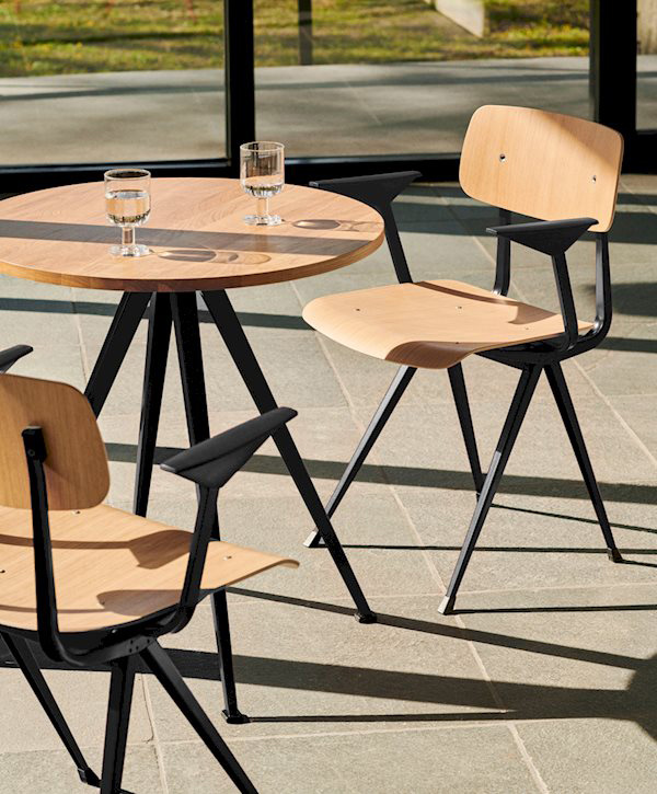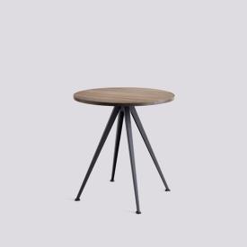 Conçue pour être fonctionnelle, légère et robuste, la table de café Pyramid se compose d'un plateau carré ou rond en chêne et de fins pieds en tôle d'acier inclinés vers l'extérieur. Créée à l'origine par Wim Rietveld lorsqu'il travaillait chez Ahrend dans les années 1950, cette collection en acier découpé a été relancée par HAY en collaboration avec Ahrend. Adaptée à une grande variété de restaurants et de cafés, elle est disponible en plusieurs finitions de bois et coloris de piètement.