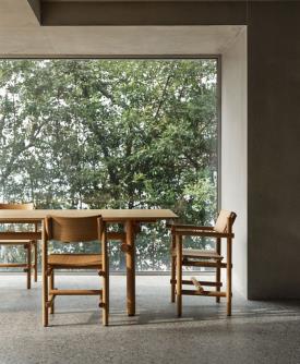Pour l'architecte et sculpteur Jonathan Muecke, la matière est essentielle, la répétition est clarté et la logique est liberté. Pour sa première collaboration commerciale avec Knoll, Muecke applique les principes de sa pratique artistique à la création d'une collection de salle à manger entièrement en bois, aussi familière qu'une table et des chaises de cuisine. « J'aime prendre les choses pour ce qu'elles sont et ne pas essayer d'imaginer ce que quelqu'un a voulu qu'elles soient », explique Muecke. « Au final, ce sont des objets généreux. »