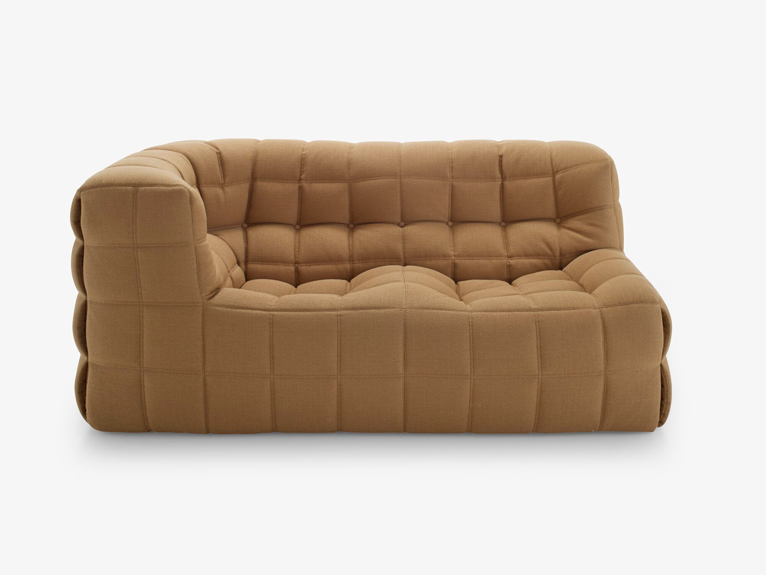 Ligne Roset Design. Michel Ducaroy - Moyenne méridienne Dimensions : l 175 x h 75 x p 100 cm En 2023 Ligne Roset réédite son modèle emblématique Kashima. C’est le ''Chesterfield confortable''. Kashima de Michel Ducaroy offre à la clientèle classique un confort ''à l’anglaise''. Les formes généreuses de ce modèle permettent de donner une image rassurante à un siège tout mousse. Siège tout-mousse véritable, Kashima cache, sous son apparence accorte, un confort moelleux en arrondis et en galbes (accoudoirs, cale-reins, appui-tête intégrés). Cependant ce confort ne doit rien à une concession sur la qualité des mousses de fortes densités qui la composent. Rappelons ici que la densité d’une mousse est la seule garantie de longévité. Plus les mousses sont de densités fortes et plus le siège durera. Le capitonnage est ensuite réalisé à l’aide de tirants invisibles, disposés à l’intérieur de la mousse. Le classicisme de ses formes ne prive pas Kashima d’une pointe de fantaisie. La couverture entièrement matelassée, recouvrant le siège, forme aux angles des coutures ''pincées'', renforcées par lacettes intérieures. La forme en NID de l’assise, permet à l’utilisateur de s’assoir, en se calant sur les côtés. STRUCTURE Entièrement constituée de mousse de 2 densités différentes : polyéther 21kg/m3 – 3.2kPa et polyéther 28kg/m3 – 4.8kPa. Parementage de ouate polyester 480g/m. CONFORT L’assise et le dossier sont constitués identiquement de mousses polyuréthane haute résilience Bultex (36 kg/m3 - 3,6 kPa) et (26 kg/m3 – 1.4 kPa). Parementage de mousse hyper souple 45kg/m3 - 1.8kPa. COUTURES / HOUSSES Surpiqûre double-aiguille pour l’ensemble des coutures plus capitonnages. La housse est matelassée de ouate 480g/m2. Déhoussable par un professionnel. canapé