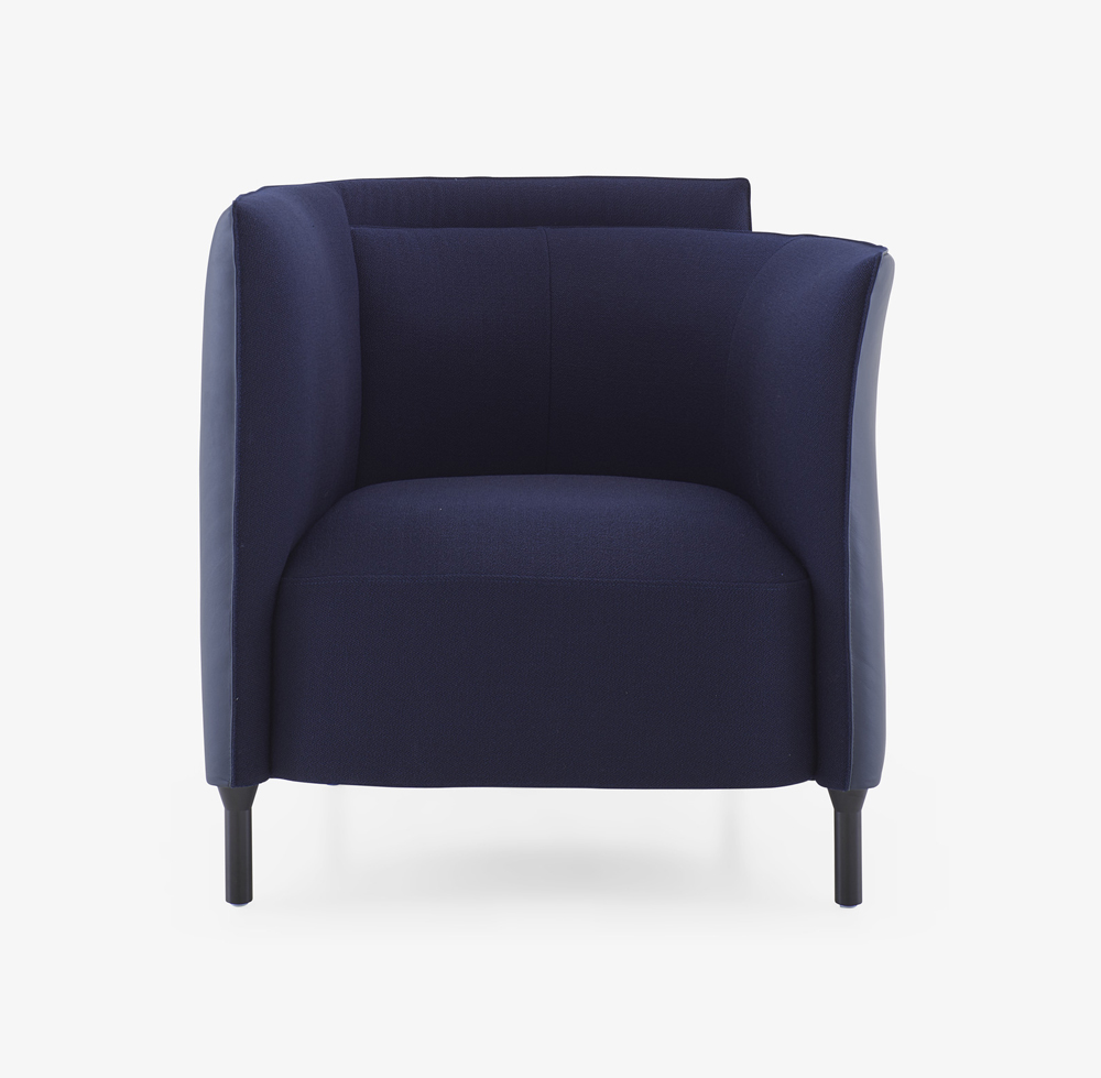 STRUCTURE : Pour le dossier deux cadres mécano-soudés reliés. Accoudoirs et structure dos en tubes soudés, parementés de mousse haute résilience Bultex (50 kg/m3 – 6.3 kPa) et de ouate polyester 110g/m². Pour l’assise, structure réalisée en panneaux de multiplis. Pieds métalliques laqués noir mât.