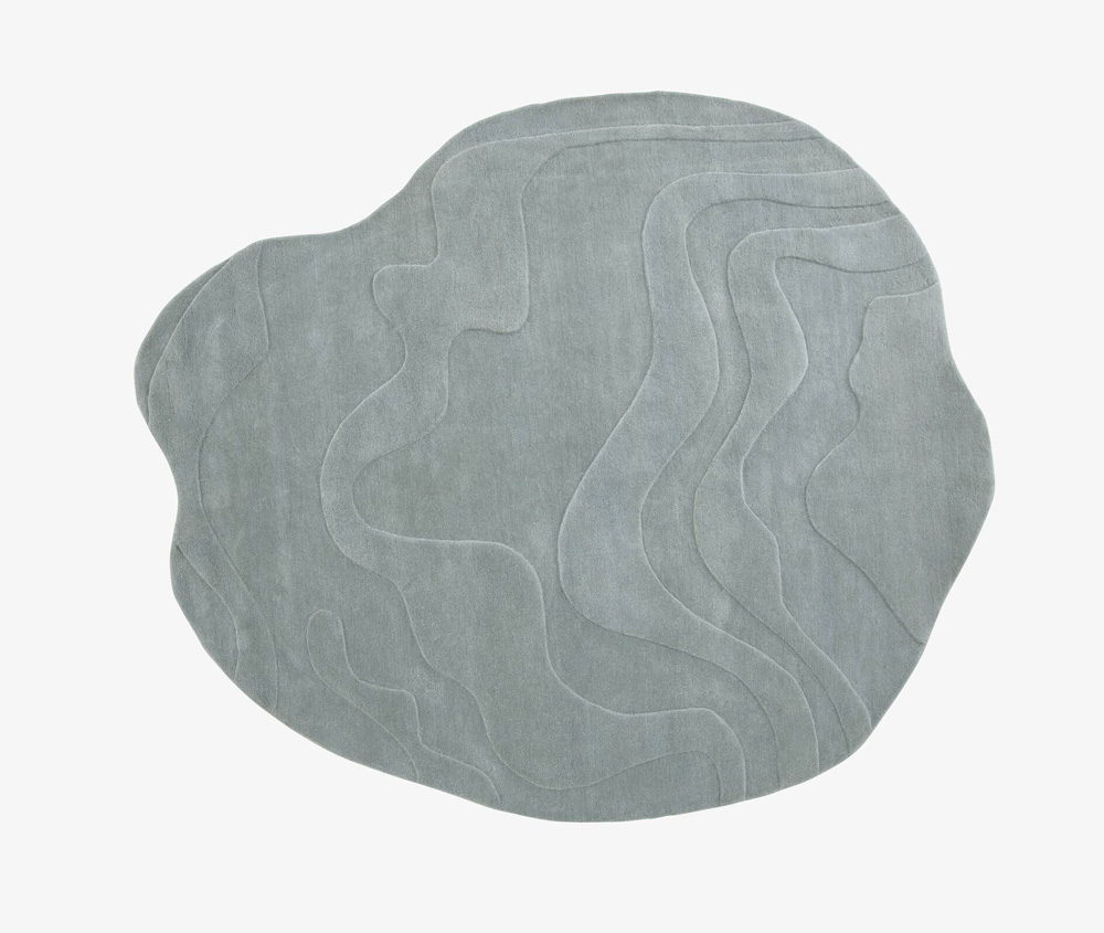 Ligne Roset Design. Pierre Paulin Dimensions : 230 x 270 cm Nouvelle version du tapis Gavrinis en forme de galet irrégulier, suivant les contours des dessins relevés par Pierre Paulin, tels des courbes de niveau topographiques. Le dessin des motifs du tapis est restitué grâce à un subtil travail de ciselage du tuft sur deux hauteurs de laine, toute de la même couleur. Tapis 100 % laine, tufté main, ciselé avec tuft de 2 hauteurs différentes (10-11 mm et 14-15 mm), dessinant les motifs à partir d’un seul coloris. tapis
