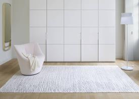 Ligne Roset Design. François Azambourg Dimensions : 183 x 300 cm Tout le travail de François Azambourg tend vers l’épure, la simplicité et la légèreté. Son tapis Tracé illustre bien cette approche : le motif dessiné semble avoir à peine effleuré la surface du tapis, comme un griffonnage machinal déposé à la pointe du crayon. L’effet de légèreté graphique est renforcé par le contraste entre la brillance discrète de la viscose du motif réalisé en micro-bouclettes et la sobriété du fond tufté rasé en laine de Nouvelle-Zélande. Tapis fond tufté rasé coloris écru, motif bouclettes coloris gris. 70 % laine Nouvelle-Zélande – 30 % viscose. tapis