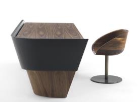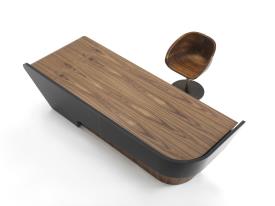 bureau en multiplis plaqué caractérisé par des lignes douces et sinueuses, il se compose d'un plateau et d'un panneau frontal plaqué en bois ou revêtu de cuir. Equipé d'une commode pratique composée de trois tiroirs assemblés en queue d'aronde avec des fentes latérales pour l'ouverture.