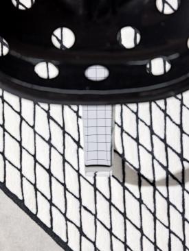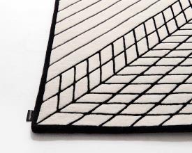 Tapis tufté à la main avec un molleton uniforme sur toute la surface composé à 100% de laine de Nouvelle-Zélande. Support inférieur en toile 100% coton fixé avec de la colle latex 100% naturel. Bordure périphérique finie à la main avec du fil de laine sur les six côtés. Disponible dans les formats 200x300 cm et 250x350 cm dans une seule palette de couleurs : fond blanc et lignes grises et noires conformes au dessin original. Épaisseur du tapis - 9 mm et poids -3,7 kg / mètre carré.