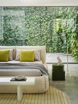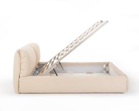 Zanotta Design. Design Zaven, 2024 Dimensions : l 195/205/215 x h 100 x p 235 cm Lit. Sommier et tête de lit en MDF revêtus de billes de polyester régénérées et régénérables. Tissu intérieur en polyester régénéré et régénérable; revêtement en tissu déhoussable. Le lit est équipé de supports d'angle réglables en hauteur sur lesquels on peut placer les ressorts fournis séparément. Lit avec élément de rangement. Sommier et tête de lit en MDF revêtus de billes de polyester régénérées et régénérables. Structure des ressorts en acier verni aluminium. Suspension en lattes de hêtre courbées naturel. Tissu intérieur en polyester régénéré et régénérable; revêtement en tissu déhoussable. Le lit, installé à l'intérieur du sommier, est doté d'un élément de rangement auquel on accède en soulevant les ressorts à l'aide d'un dispositif spécial.